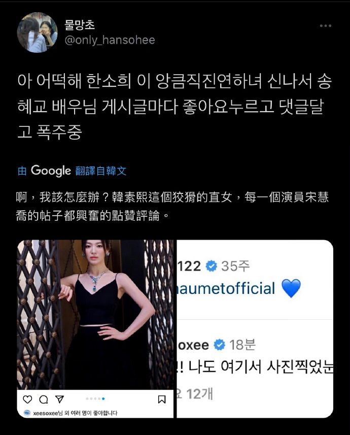 韩素希说宋慧乔现在是她的了韩素希官宣和宋慧乔合作《自白的代价》,还考古点赞!!真的很爱看一些美女子贴贴!